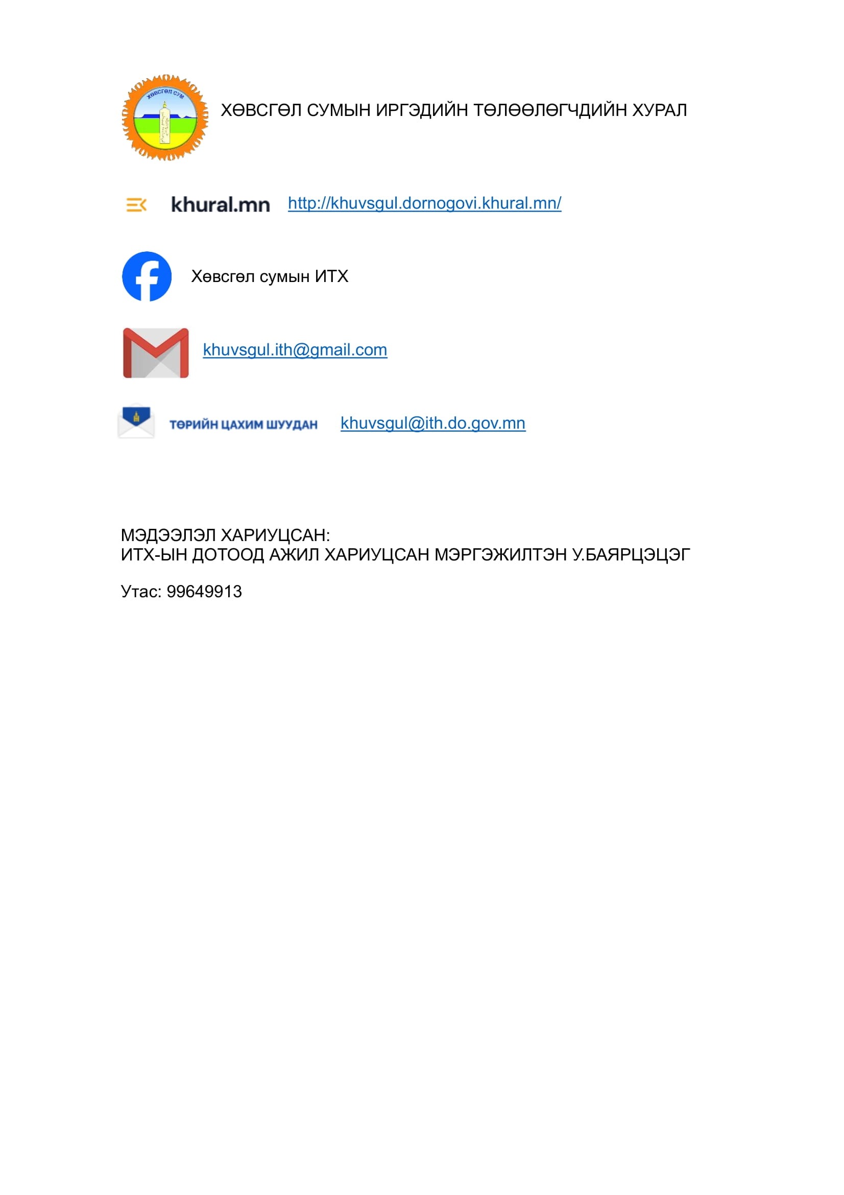 Дорноговь аймгийн Хөвсгөл сумын Иргэдийн төлөөлөгчдийн хурлын албан ёсны цахим хуудас