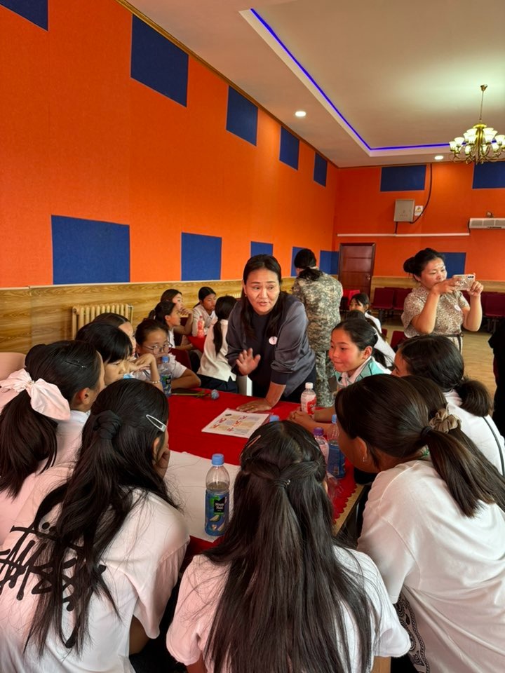 4.Өсвөр насны охидын бэлгийн дарамт, хүчирхийлэл сэдвийн хүрээд охид өөртөө итгэх итгэлээ нэмэгдүүлэх, өөрийн үнэ цэнийг ойлгох, өөрийгөө болзошгүй эрсдэлээс урьдчилан сэргийлэх, эрсдэлд өртсөн тохиолдолд хаана хэнд хандах талаар мэдээлэл хүргэж, дасгал ажлуулсан.